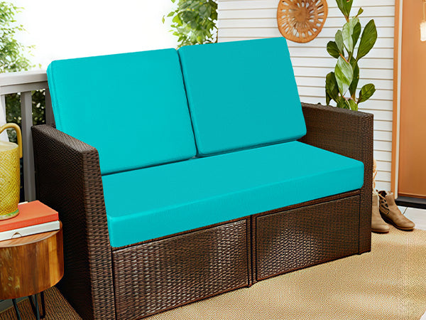 The patio furniture cushions are made of 300GSM high density polyester fabric with waterproof PU coating, which is light and thick, outdoor cushions effectively preventing water from splashing.